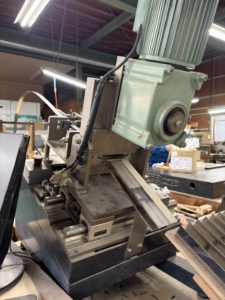 刃を入れる部分とは別に、折り曲げ用の「罫線(スジ)」を入れるための溝を木型に加工する機械です。